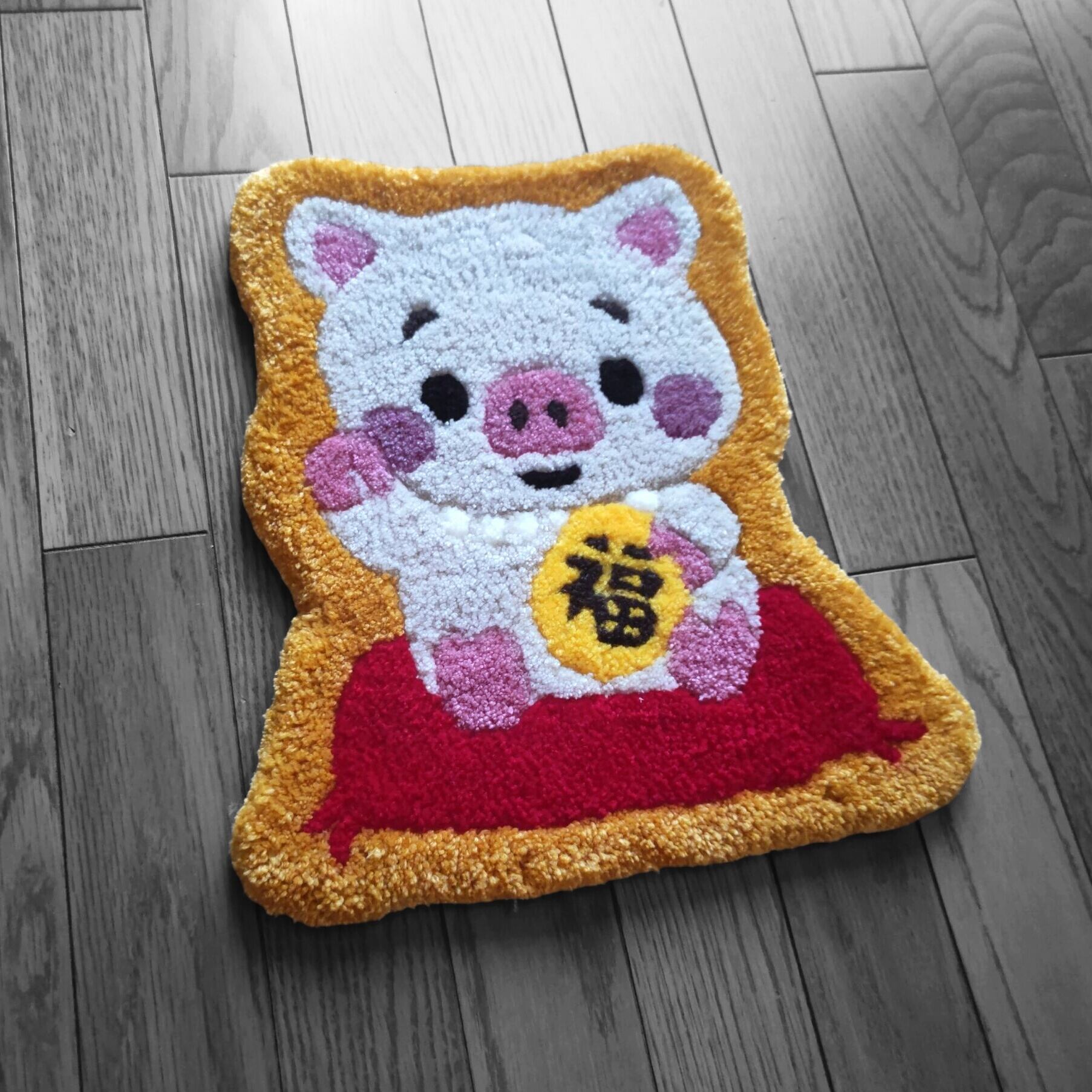 愛らしいマイクロブタが、ちいさな蹄で“福”を招いてくれるラグマットができました。